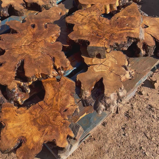 Smaller Olive Wood Cookies sold individually or in sets of 2. Sizes range from 10-20” diameter and they are all 2” thick. They are dry and ready to be finished.